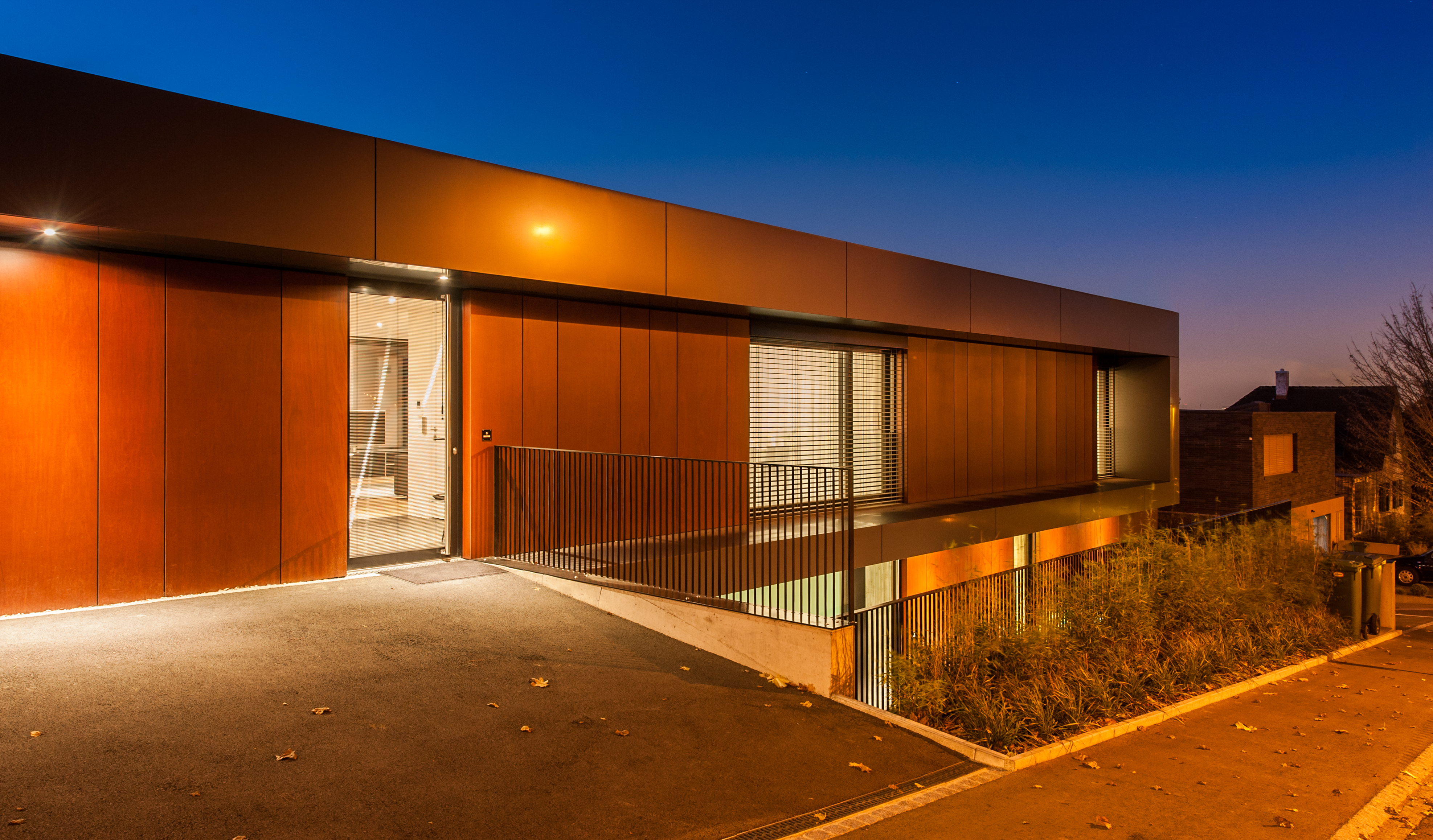 Der 2011 errichtete Neubau erstreckt sich entlang des Bruderholzrains und entspricht in seinen Dimensionen etwa dem um 90° gedrehten, 2009 fertiggestellten Nachbargebäude. Strassenseitig tritt das Gebäude eingeschossig, auf der Gartenseite zweigeschossig (+Attikageschoss) in Erscheinung.