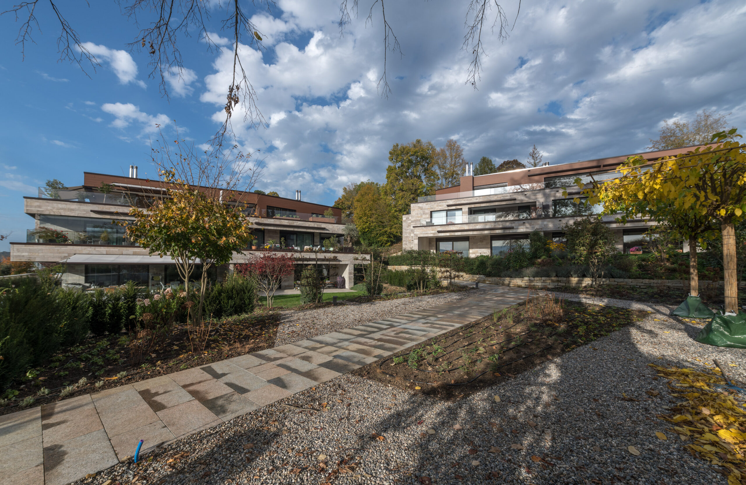 In einem der schönsten Gebiete an exklusiver Lage in Arlesheim entstanden zwei hochwertige Mehrfamilienhäuser mit je fünf Eigentumswohnungen und einer gemeinsamen Einstellhalle. Beide Gebäude sind so in einem parkähnlichen Garten nach Süd – Südwest angeordnet und voneinander abgewandt situiert, dass viel Privatsphäre jeder Wohnung ermöglicht wurde.