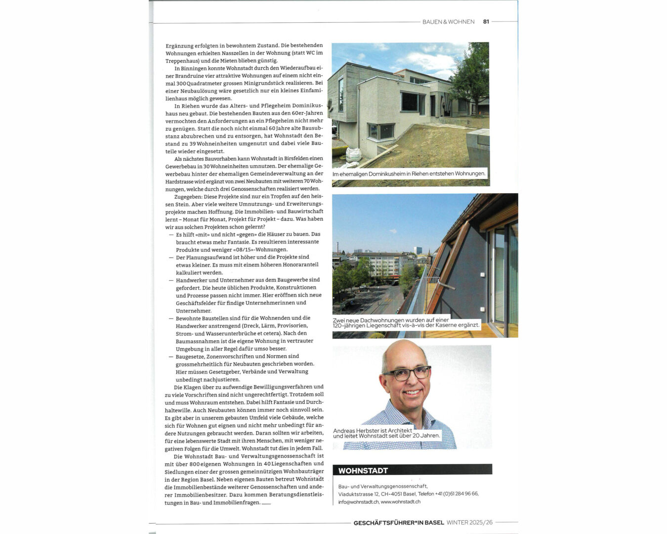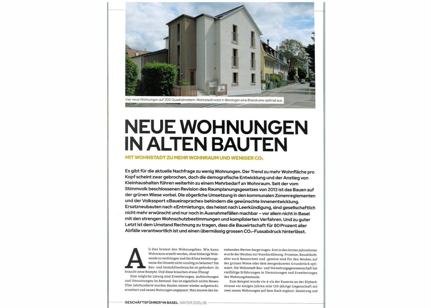 Veröffentlichung des Projektes «Kernmattstrassse 18, 4102 Binningen» Wiederaufbau einer Brandruine mit 4 Genossenschaftswohnungen